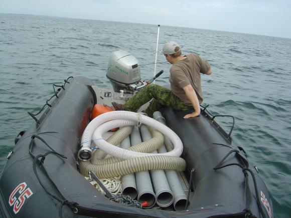 sowie eine mobile Sauganlage. Die Fundsäcke wurden an Bord auf